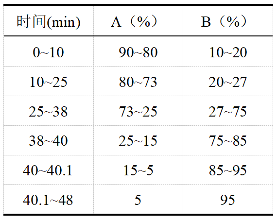 流 動 相:A:0.1%磷酸溶液;B:乙腈