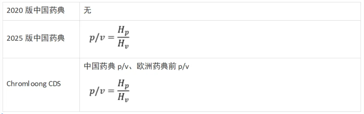 若待測(cè)物質(zhì)峰與相鄰峰之間未達(dá)到基線分離,如在有關(guān)物質(zhì)檢測(cè)時(shí),峰谷比(p/v)可作為系統(tǒng)適用性試驗(yàn)參數(shù)。