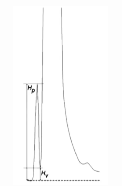 Hv為小峰和大峰間曲線最低點(diǎn)平行外推基線的高度。