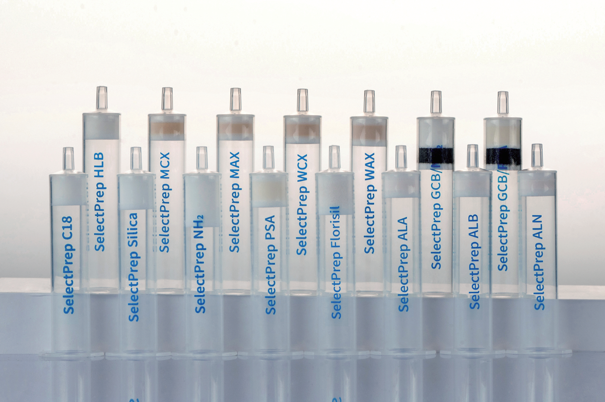 SelectPrep GCB/NH2是同時裝有石墨化碳黑和NH2兩種填料的固相萃取柱。石墨化碳黑常用于吸附食品體系中的色素,NH2用于吸附脂肪酸和有機酸等干擾物,適用于農藥多殘留的檢測,包括水果、蔬菜、肉類、水產品、谷物以及奶制品中農殘的檢測。